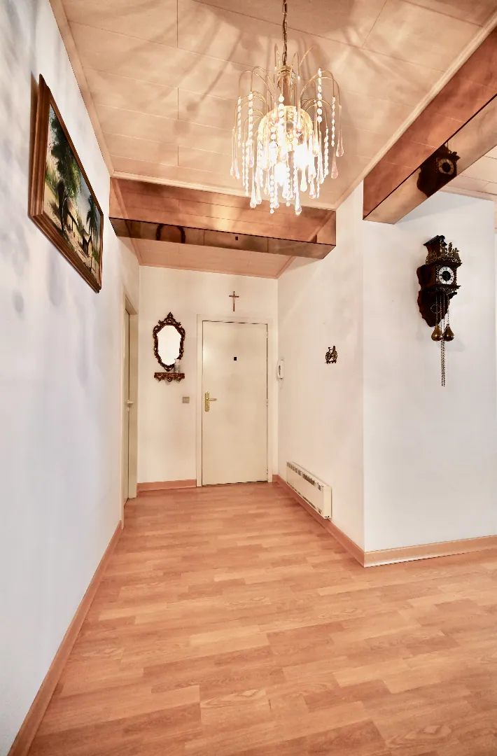 Het appartement is gelegen op de tweede verdieping van deze residentie en omvat een imposante inkomhal, zeer ruime woonkamer, half open keuken, twee grote slaapkamers, badkamer, balkon aan voorzijde en terras met berging aansluitend aan beide slaapkamers.