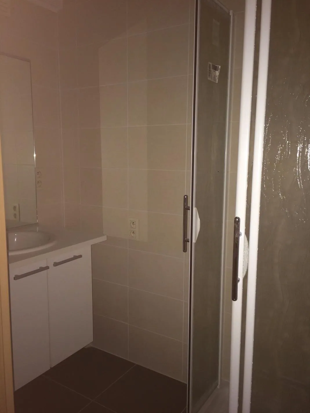 Hall, living met ingerichte open keuken, terras, 1slp, badk mt douche en apart toilet. Eveneens gemeenschappelijke fietsenberging in residentie.