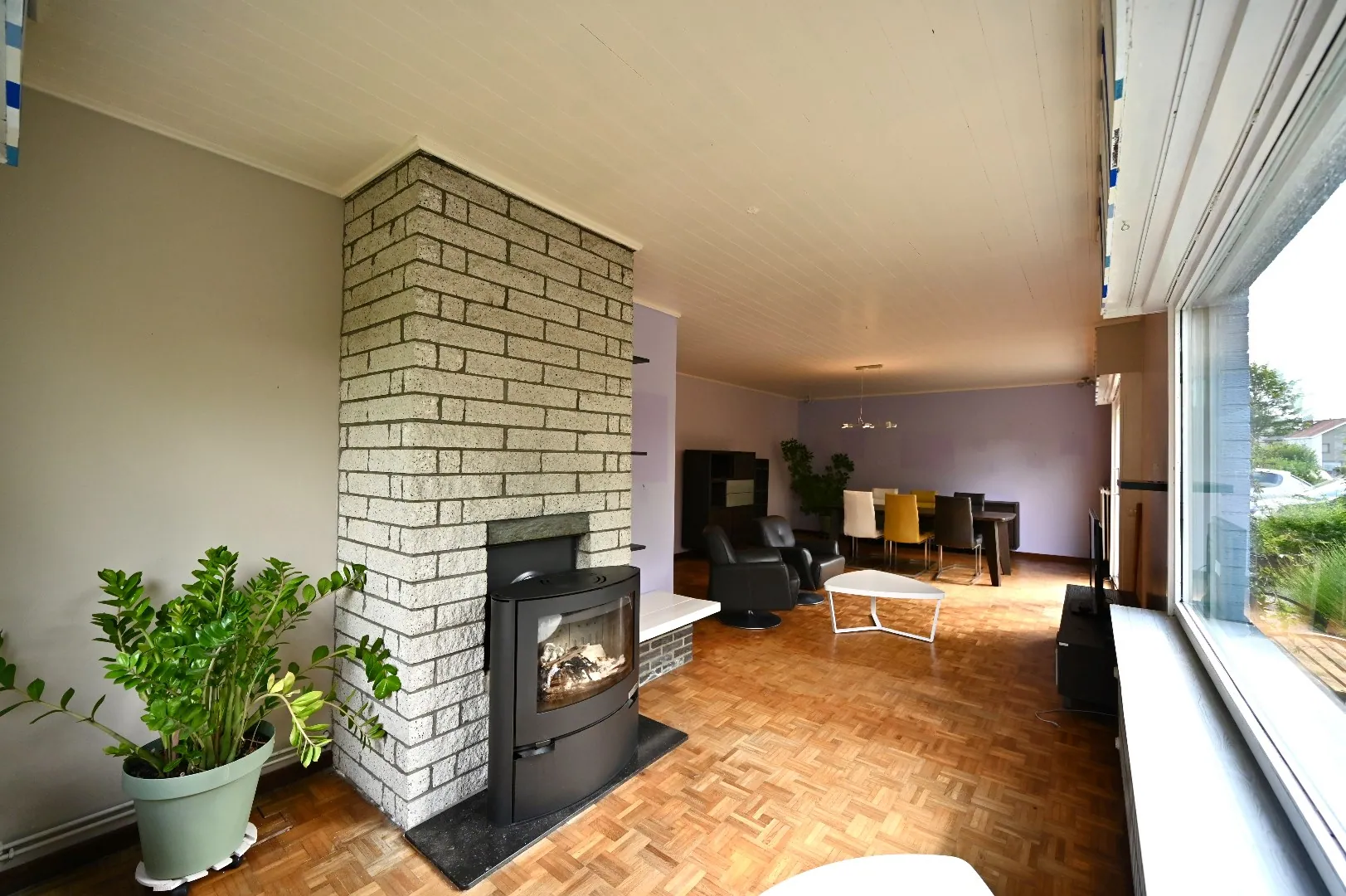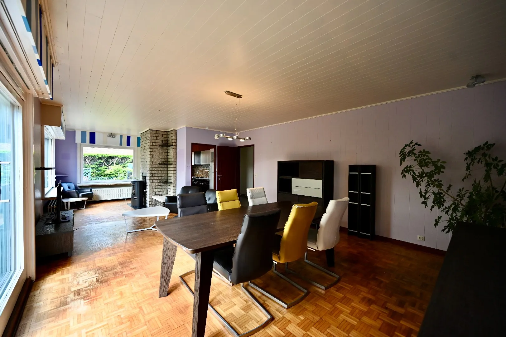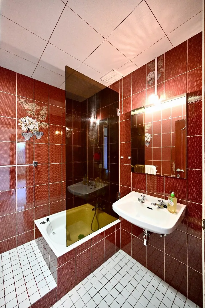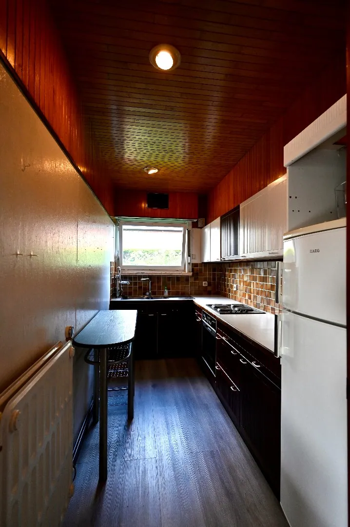 Deze knappe woonst beschikt over grote raampartijen waardoor je in deze mooie ruime leefruimte geniet van optimaal lichtinval. Ideale ruimte om met het hele gezin samen te genieten in deze gezellige ruimte rond de houtkachel (bijkomende CV verwarming). De klassieke keuken is volledig ingericht en kan worden opengetrokken naar een open of half open keuken. Rond de hall bevinden zich nog drie slaapkamers, waarvan een masterbedroom, jeugdkamer en bureelruimte. Hiernaast bevindt zich een apart toilet en de badkamer, uitgerust met lavabo en zitbad in retro style.