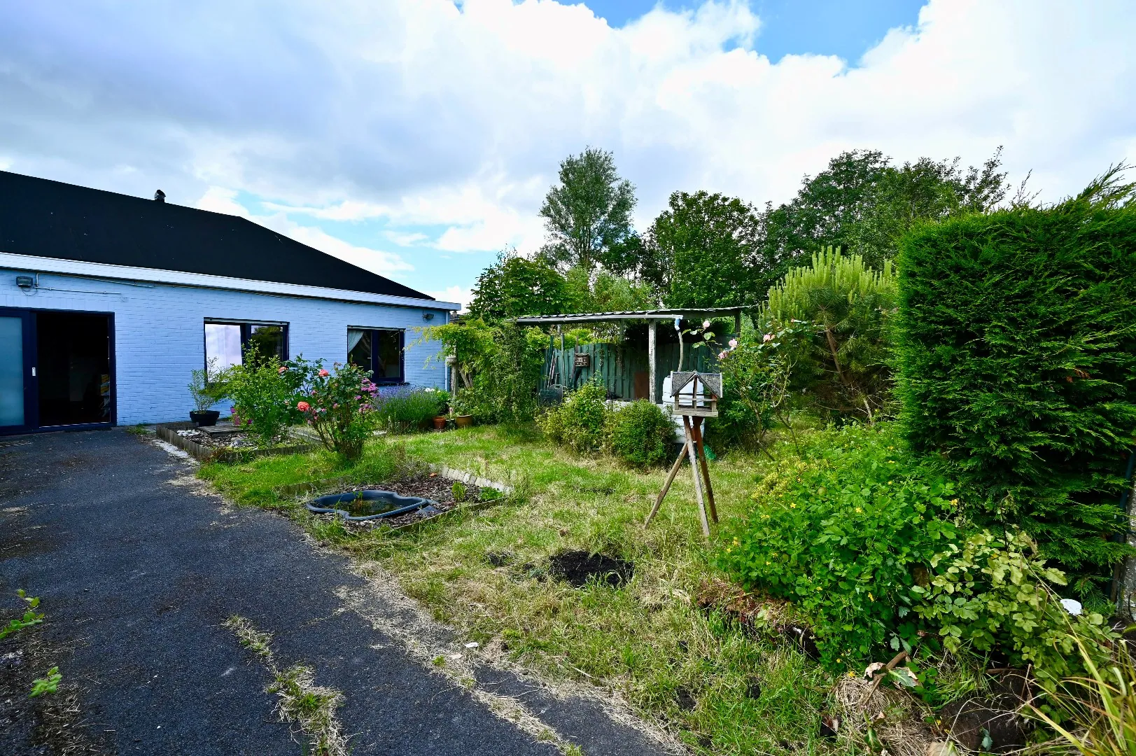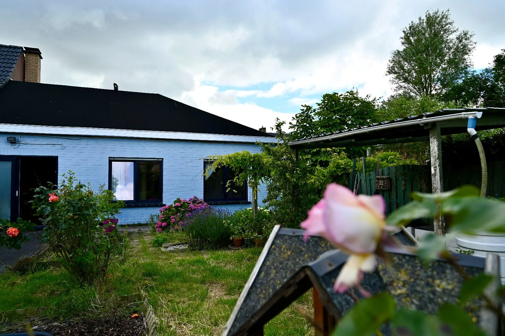 Alle leefruimtes bevinden zich momenteel op de gelijkvloerse verdieping en bieden bijna van uit alle ruimtes toegang tot de prachtige zuidoost gerichte tuin . Ideaal voor tuinliefhebbers, kinderen die graag buiten spelen of voor ontspannende zomerdagen waar plaats is voor zalige BBQ momenten met familie en vrienden. Er is een garage die toegankelijk was via een zijweg maar waar poort vervangen werd door een groot schuifraam. Deze bungalow is een unieke kans voor wie op zoek is naar een huis met karakter en mogelijkheden.