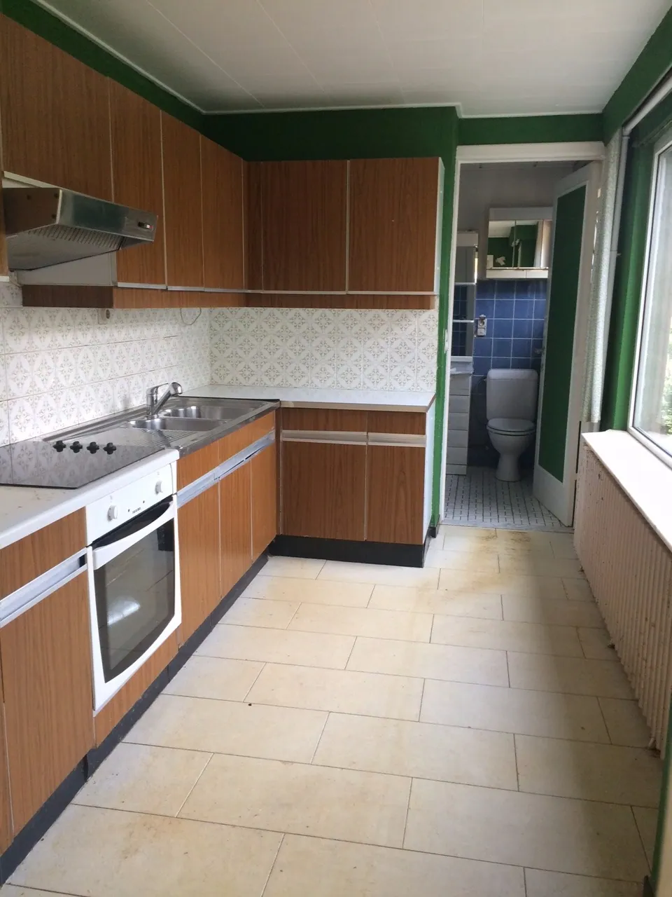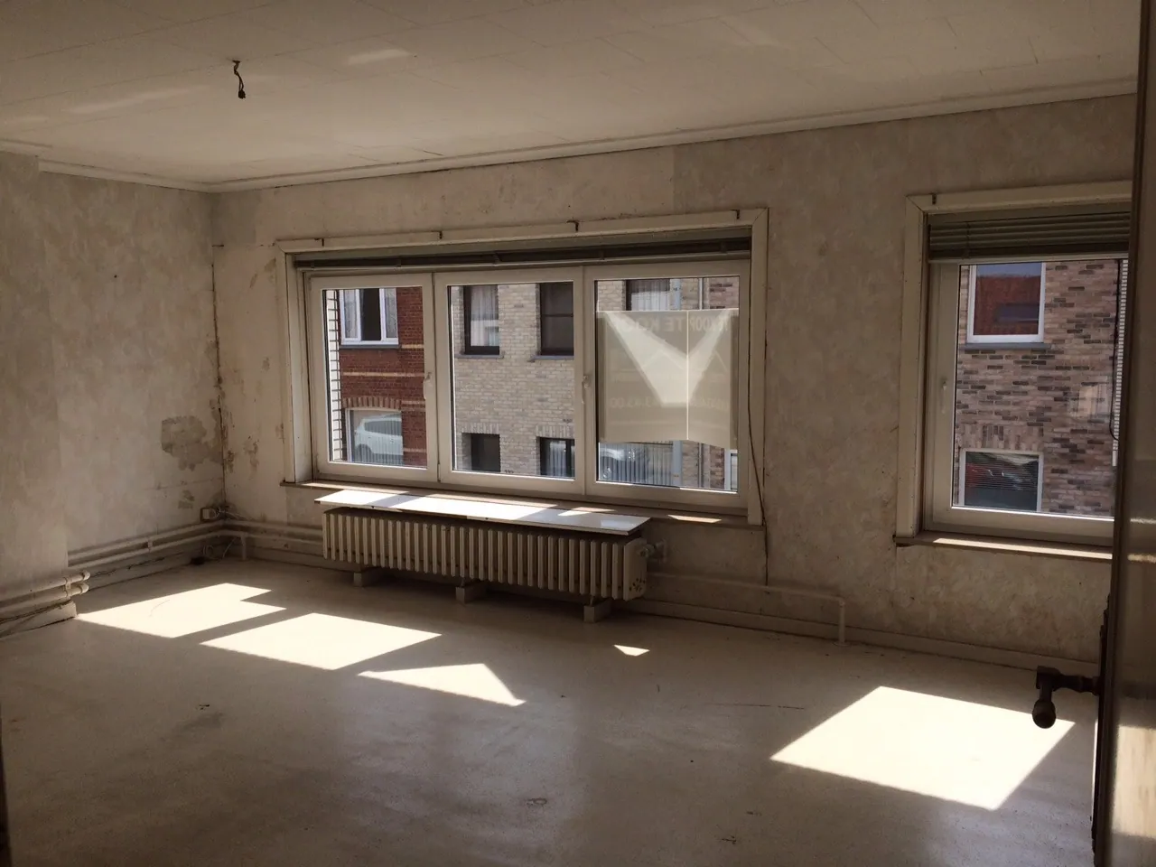 Mooie woning mt ruime ruimtes, omvattende : Hall, living, keuken, badkamer, veranda, tuintje, kelder, twee grote slaapkamers en zolder. Op te knappen !!