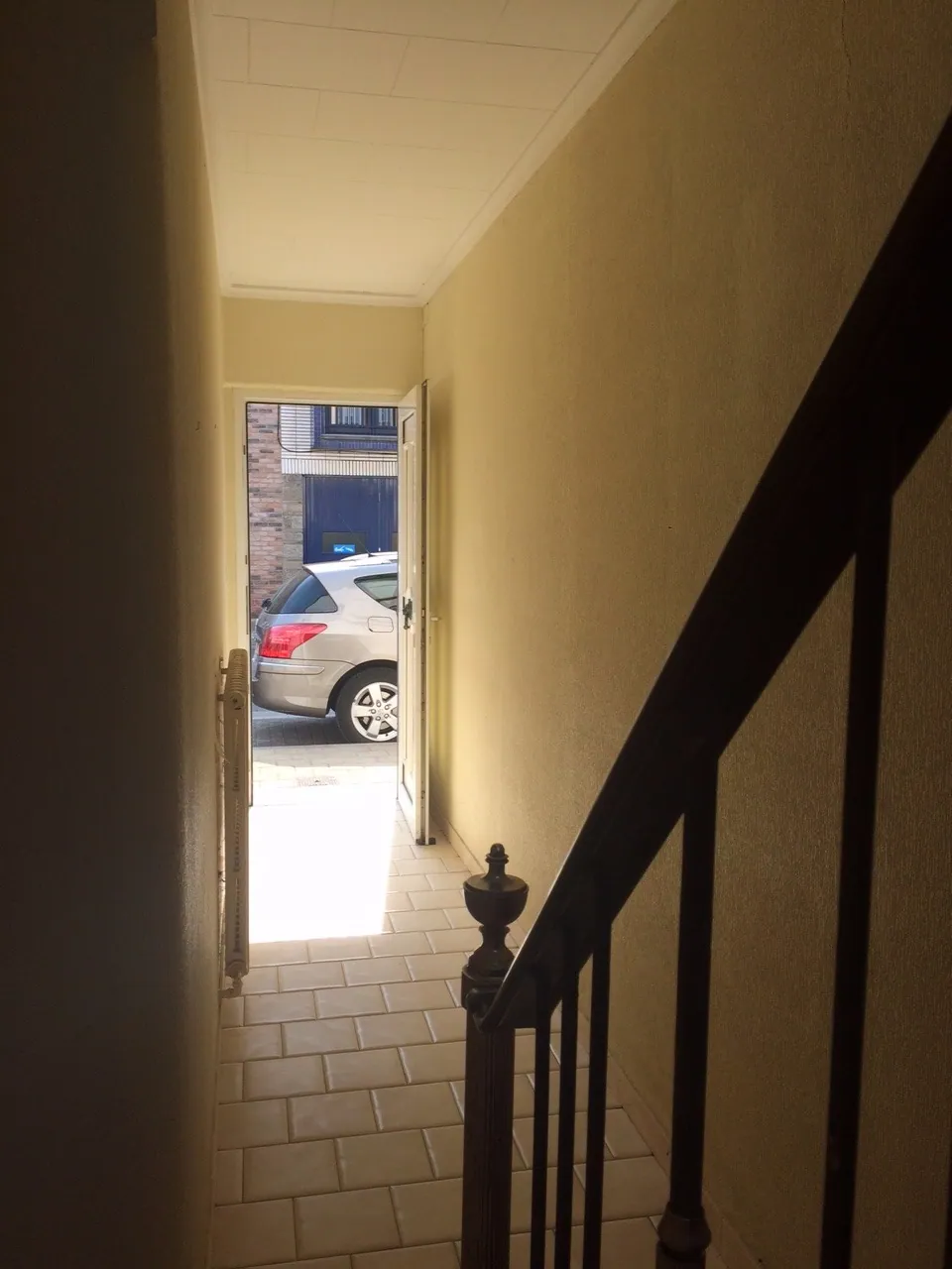 Tegelvloeren op GV deels bekleed met vinyl. Vinyl op verdieping.