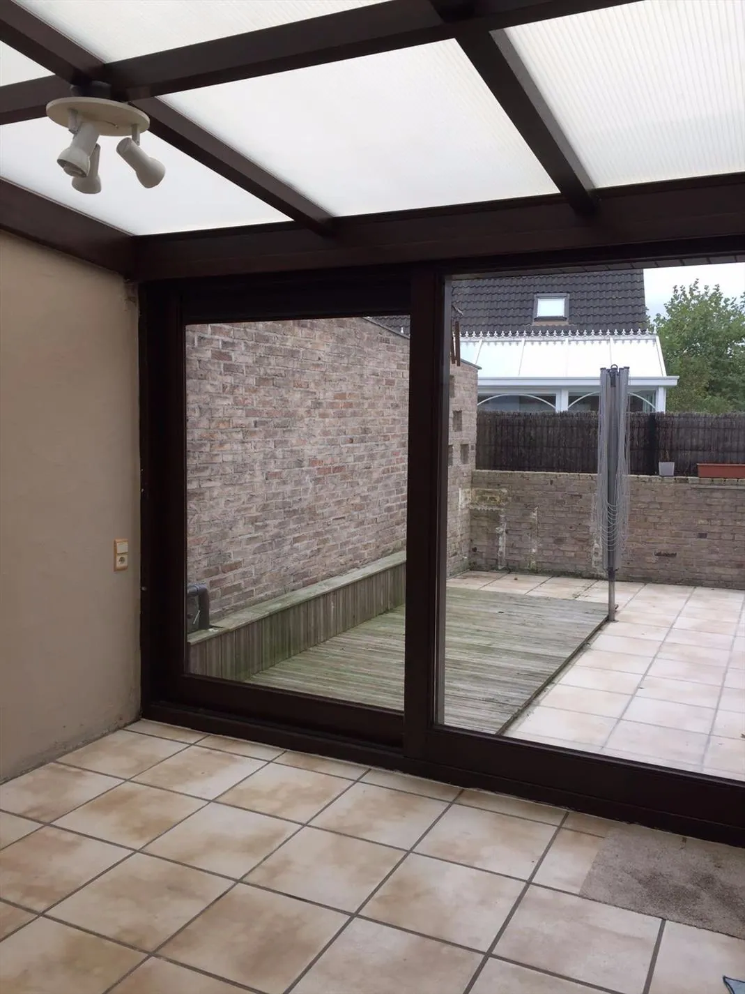 Op het gelijkvloers vindt u de inkomhall, living met aansluitend veranda en zonneterras, aparte keuken, ingerichte badkamer met hoekbad en mooie tuin.